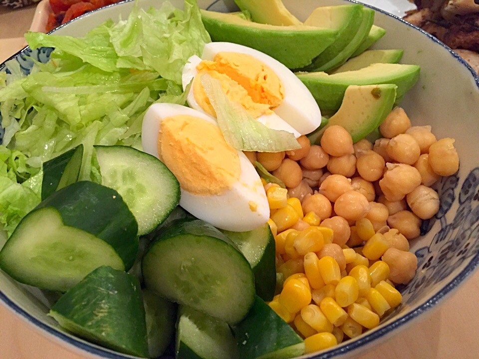 (写真1:ひよこ豆、アボカドなどのサラダ)